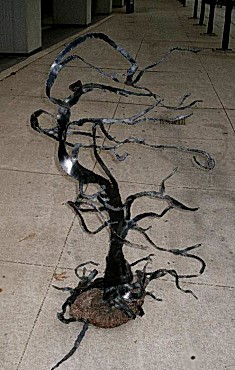 This is another in my Living With Trees series of sculptures. Though made from metal, the piece has the flowing feel of a tree in the northern Canadian Shield, swept by a fierce wind. The tree clings to granite foundation, as the living tree it represents